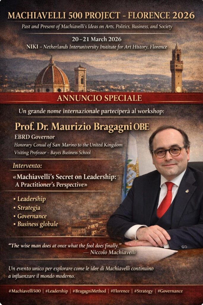 The Machiavelli 500 initiative seeks to strengthen international engagement with Machiavelli’s legacy through academic programmes, cultural activities, and policy discussions throughout 2026. I am pleased to support this initiative and to contribute to the exchange of ideas inspired by one of history’s most influential thinkers.